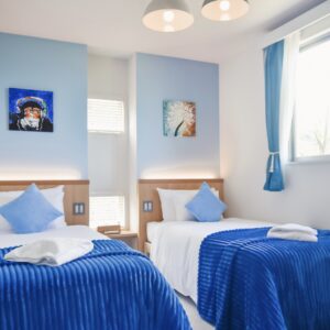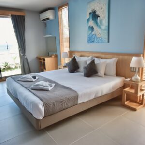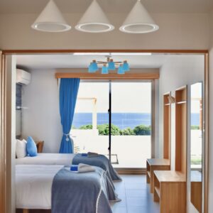 各寝室の設備 | エアコン、化粧台&椅子、専用ランプ、化粧鏡、ヘアドライヤー、目覚まし時計、バゲージラック、ウォールミラー、ハンガーラック、ハンガー、綿のシーツ、予備の毛布、遮光カーテン、タオル用乾燥ラック、棚、アイロン、アイロン台、ティッシュボックス |