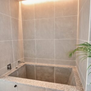 バスルームの設備 | 独立バスタブ、オーバーヘッドシャワー、一般シャワー、洗面台、防曇ミラー、乾燥機付き10㎏洗濯機、柔軟剤入り洗剤、エアコン、ベンチ、タオル用乾燥ラック、体重計、マークスアンドウェブの洗顔フォーム・シャンプー・コンディショナー・ボディソープ、歯磨き粉、綿棒、ティッシュボックス、竹の歯ブラシ、タオル類、生理用ナプキン |
